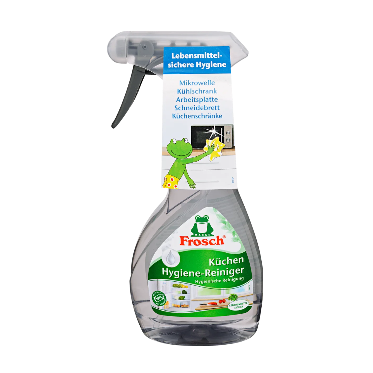A boróka kivonat tartalmú Frosch konyhai tisztító spray hatékonyan távolítja el a szennyeződéseket és ételmaradékokat a hűtőszekrény és a mikrohullámú sütő belsejéből, a vágódeszkáról és a konyhapultról, miközben megszünteti a kellemetlen szagokat. Higiénikus tisztaságot biztosít. Bármely élelmiszerrel érintkező felületen használható.